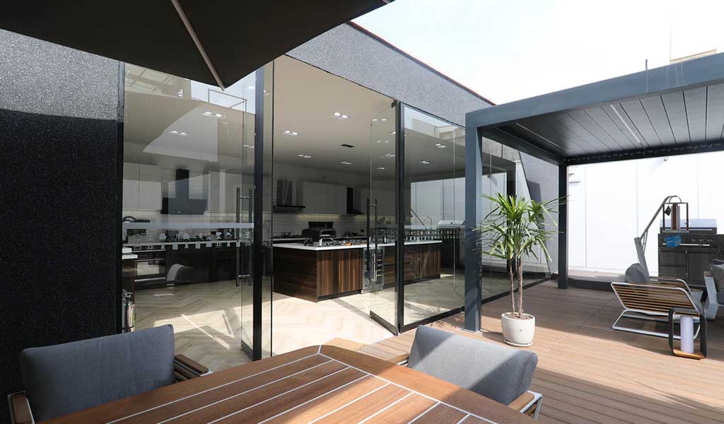 Kitchen Factory, un showroom que fue diseñado para descubrir la cocina ideal. Todos los materiales y detalles implementados fueron pensados para resaltar la esencia de marca y gran portafolio de productos (refrigeradoras integradas, campanas, encimeras, vineras y demás) con los que cuenta Kitchen Factory.